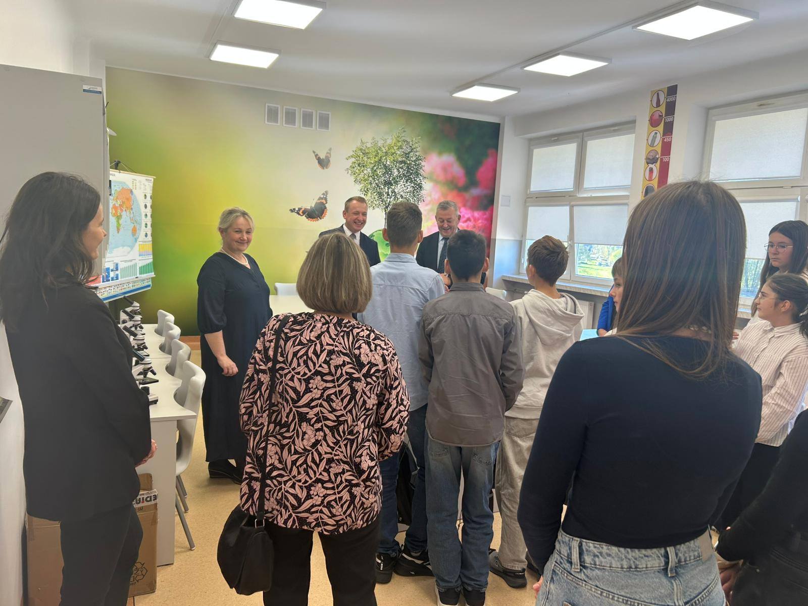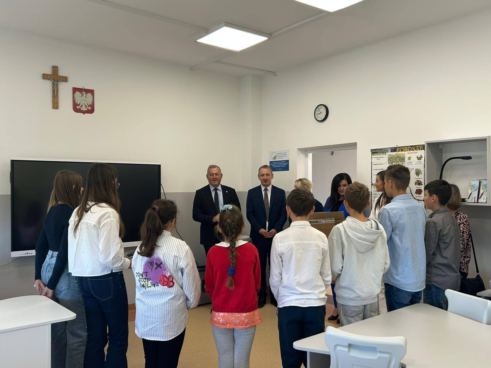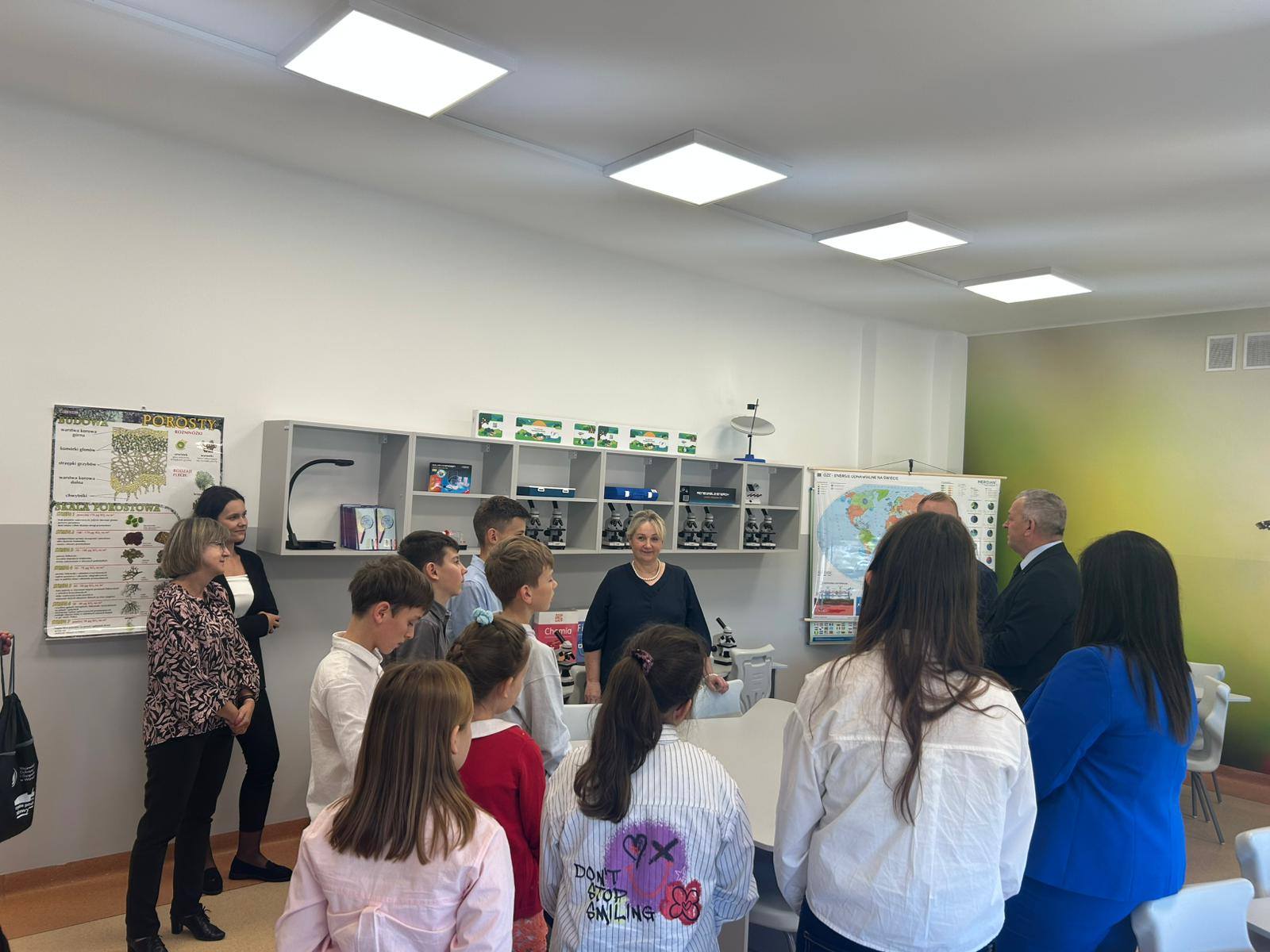 Następnie Prezes Zbigniew Deptuła uczestniczył w uroczystym otwarciu Ekopracowni w Szkole Podstawowej im. Marii Konopnickiej. Nowoczesna klasa została wyposażona w pomoce dydaktyczne, sprzęt laboratoryjny oraz narzędzia do prowadzenia zajęć przyrodniczych i ekologicznych. Całkowity koszt inwestycji wyniósł 56 781 zł, z czego 60% (34 068,60 zł) sfinansowano ze środków WFOŚiGW w Warszawie. Nowa Ekopracownia to miejsce, w którym uczniowie będą mogli odkrywać tajemnice natury i rozwijać pasję do ekologii.