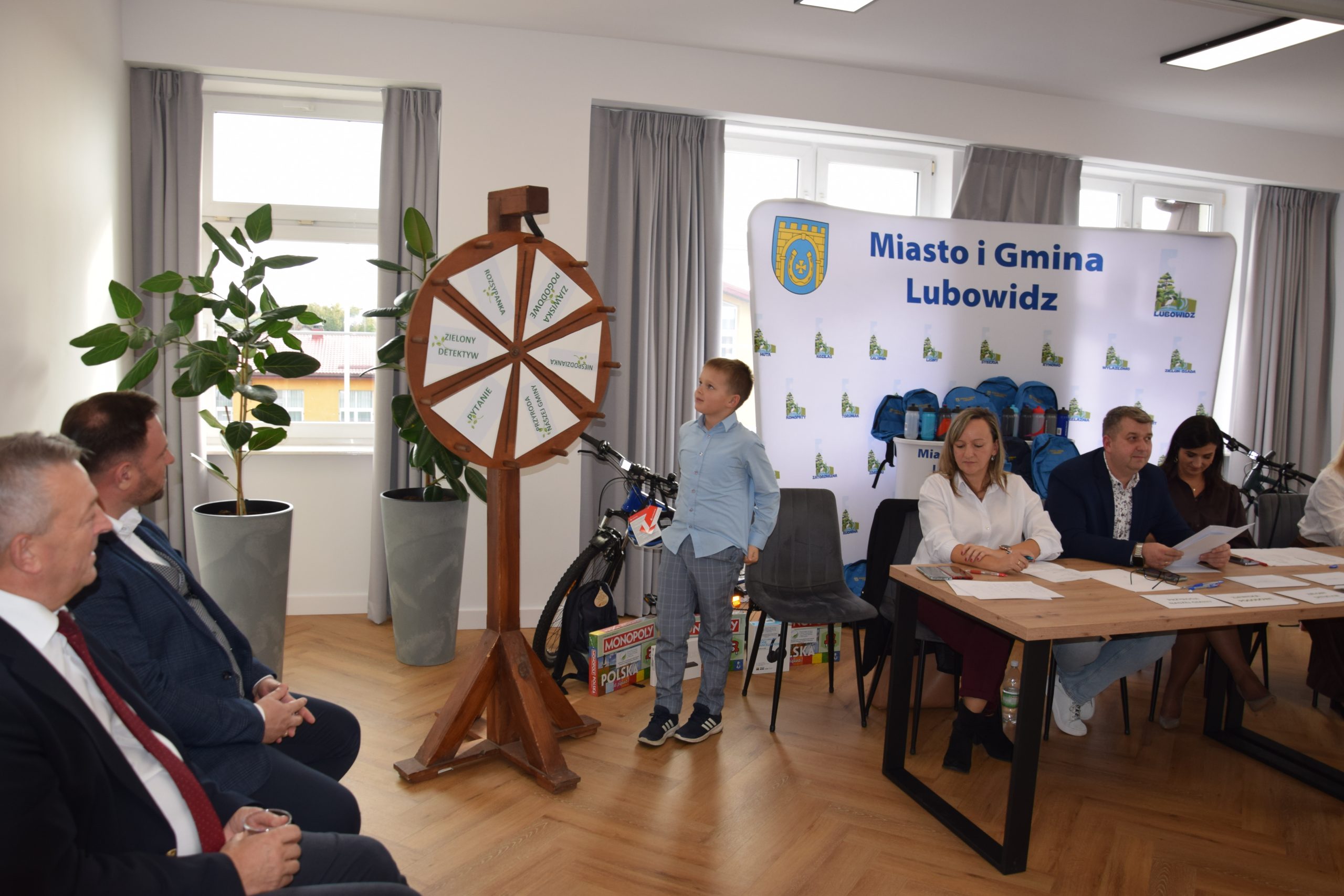Co to były za emocje! A my przeżywaliśmy je razem z młodymi pasjonatami ekologii. 23 października w Urząd Miasta i Gminy w Lubowidzu odbył się finał Konkursu Wiedzy Ekologicznej „W harmonii z przyrodą”, dofinansowanego przez Wojewódzki Fundusz Ochrony Środowiska i Gospodarki Wodnej w Warszawie dotacją w kwocie 9600 zł w ramach nowego programu „Konkursy ekologiczne”. Uczniowie zmagali się w dwóch kategoriach: klas I-IV i V-VIII. Prezes Zarządu WFOŚiGW w Warszawie Zbigniew Deptuła z zainteresowaniem śledził przebieg rywalizacji i był pod wrażeniem wiedzy młodych uczestników. Na koniec pogratulował laureatom i wziął udział w uroczystym wręczeniu nagród.
