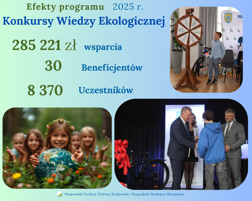 W 2025 roku Wojewódzki Fundusz Ochrony Środowiska i Gospodarki Wodnej w Warszawie prowadził program „Konkursy wiedzy ekologicznej”, którego celem było wspieranie szkół i placówek publicznych w realizacji inicjatyw edukacyjnych poświęconych ochronie środowiska.