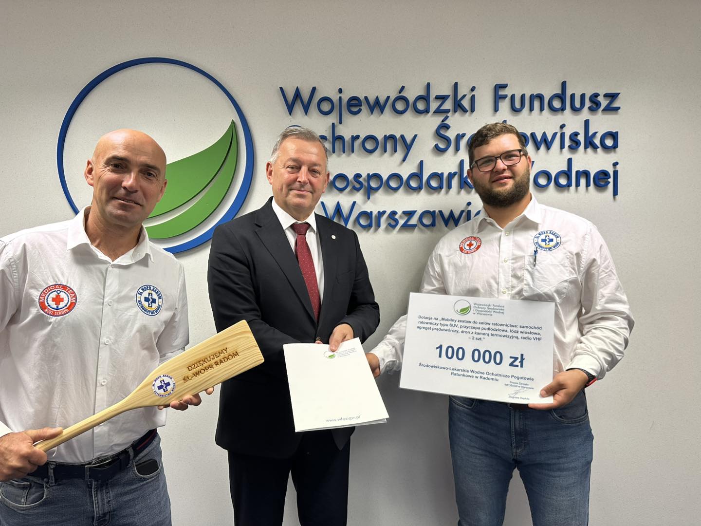 Środowiskowo-Lekarskie Wodne Ochotnicze Pogotowie Ratunkowe (SLWOPR) – na kwotę 100 00 zł. Umowę podpisali Prezes Arkadiusz Gradowski oraz Skarbnik Piotr Warmiak. Dzięki środkom z Funduszu ratownicy otrzymają nowoczesny sprzęt, w tym: