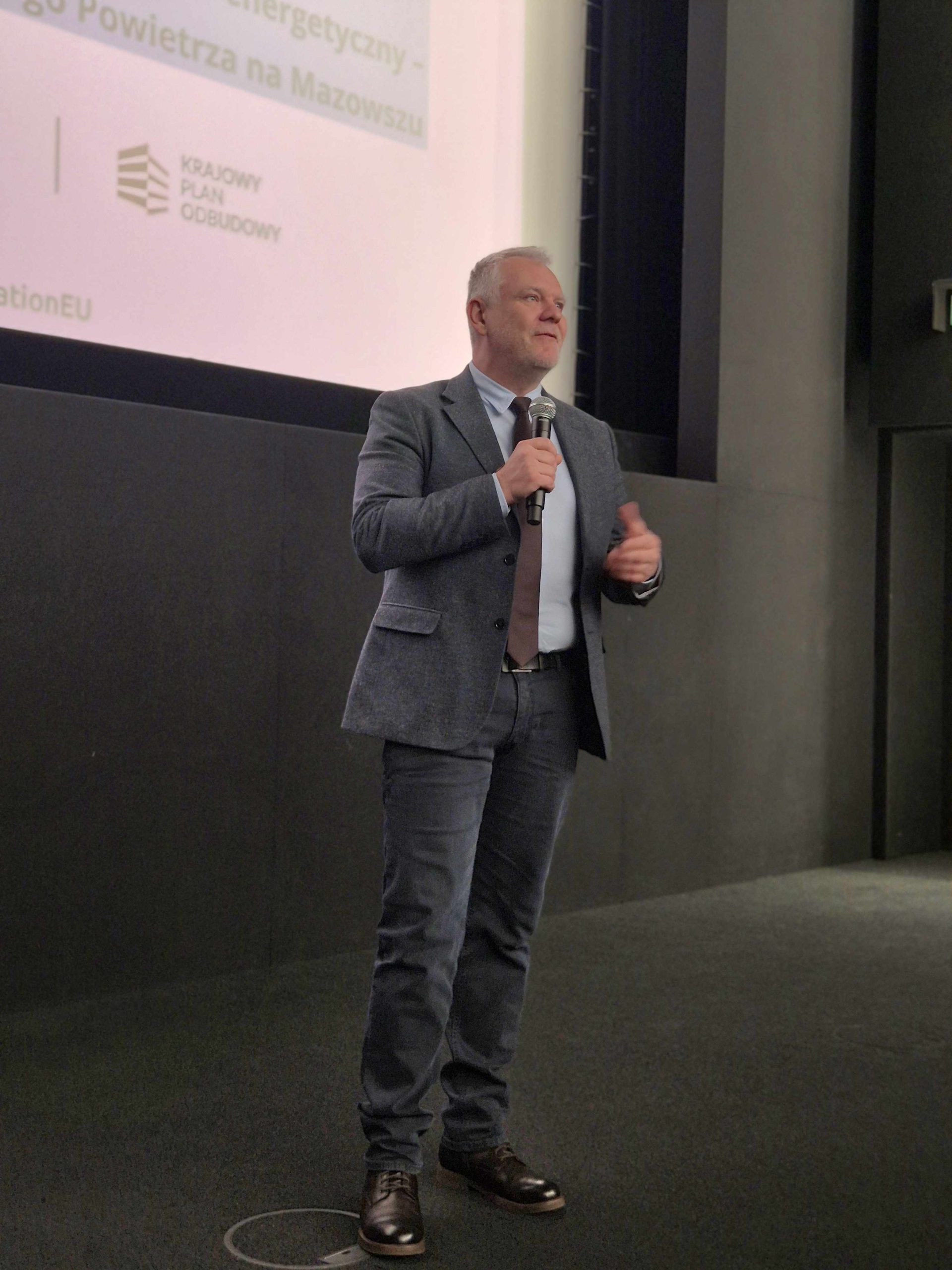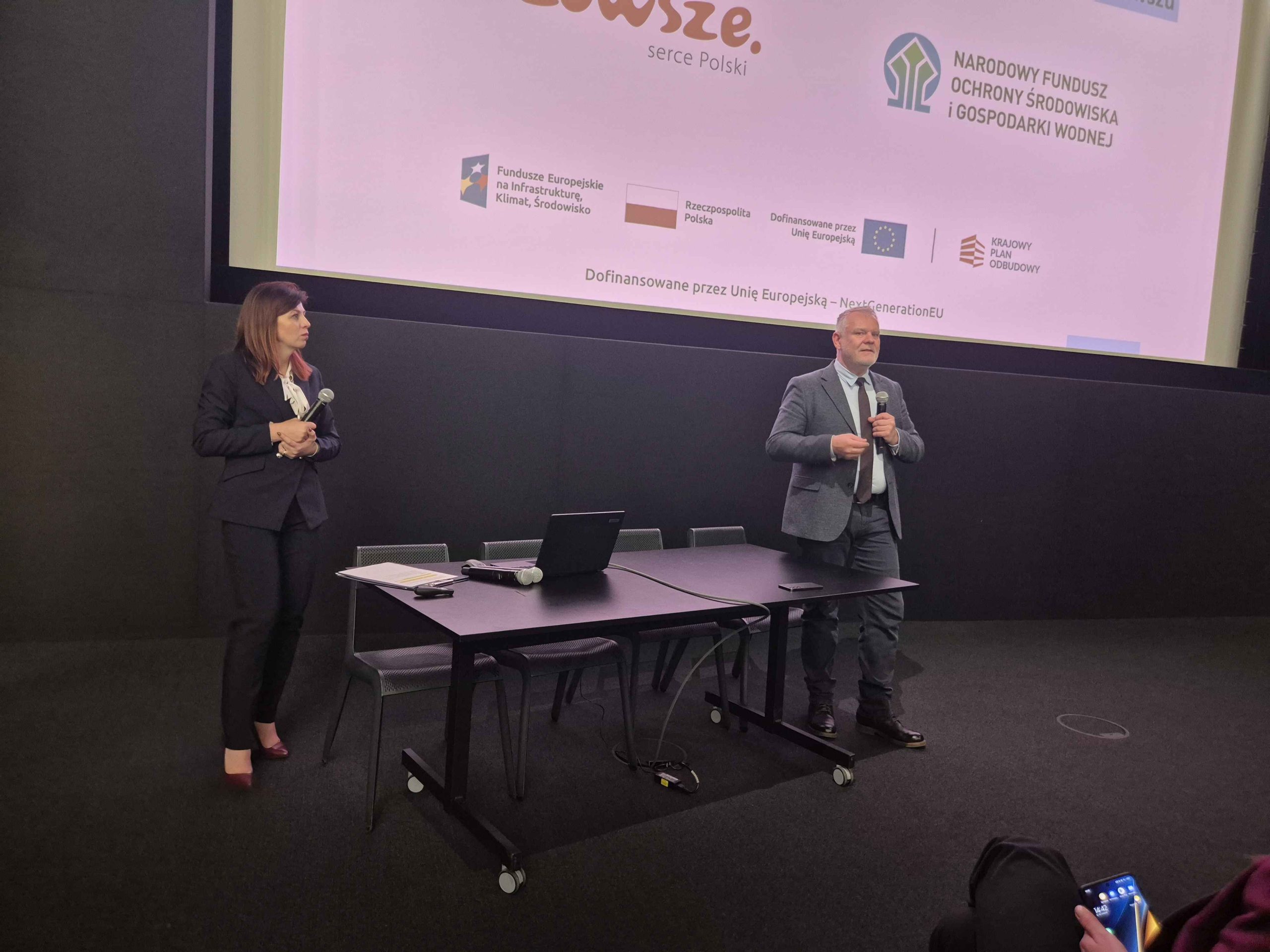 Gospodynią spotkania była Katarzyna Szmyt, Koordynator Projektu Doradztwa Energetycznego w WFOŚiGW w Warszawie, która prowadziła konferencję i zaprezentowała pierwszą prelekcję pt. „Program Czyste Powietrze w województwie mazowieckim – stan bieżący i cele”. Omówiła osiągnięcia programu, a także jego aktualne założenia po wprowadzonych zmianach, zwracając uwagę, że obecnie mocniej koncentruje się on na efektywności energetycznej budynków oraz kierowaniu najwyższego poziomu wsparcia do osób o najniższych dochodach. Podkreśliła też rolę operatorów gminnych, którzy towarzyszą mieszkańcom na każdym etapie, od konsultacji po rozliczenie dotacji.