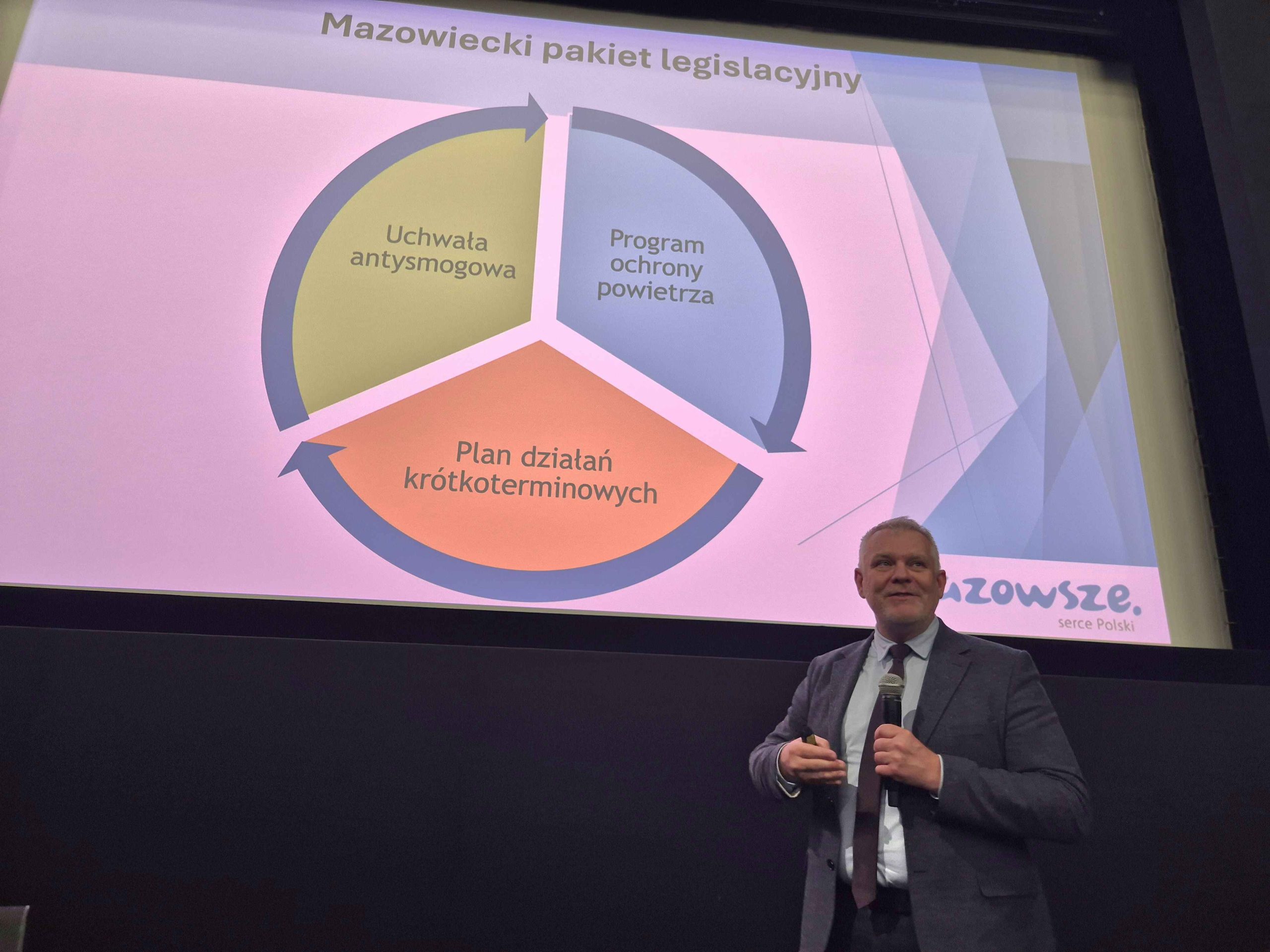 W kolejnej części spotkania, zatytułowanej „Jak z sukcesem realizować obowiązki wynikające z Programu Ochrony Powietrza dla województwa mazowieckiego”, wystąpił Marcin Podgórski, Dyrektor Departamentu Gospodarki Odpadami, Emisji i Pozwoleń Zintegrowanych w Urzędzie Marszałkowskim Województwa Mazowieckiego. Podkreślił, że uchwała antysmogowa została opracowana w sposób, który daje mieszkańcom poczucie bezpieczeństwa i czas na dostosowanie się do zmian. Zwrócił też uwagę na konieczność zachowania przejrzystości przy łączeniu funkcji ekodoradcy i operatora programu, tak by uniknąć dublowania finansowania tych samych zadań.